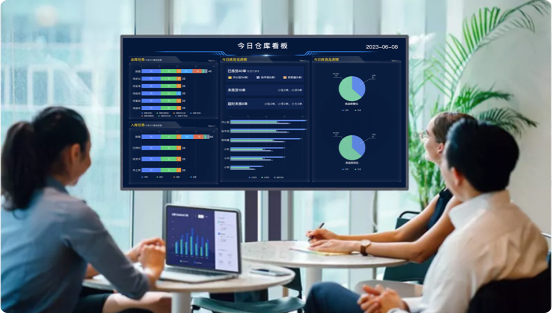 动态获取仓库作业情况,多少货物正在出库,有多少货物在入库,有多少订单待拣货,有多少订单已超时未拣,全部清清楚楚。人员拣货龙虎榜,动态实时展现,激发员工战斗力。